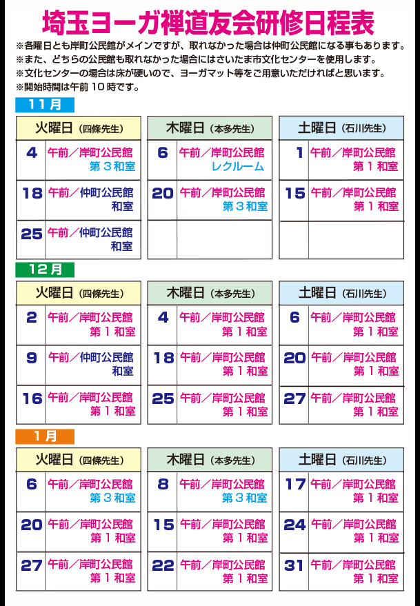 ■しあわせヨーガは毎週火曜日・木曜日・土曜日の3回開講しております。